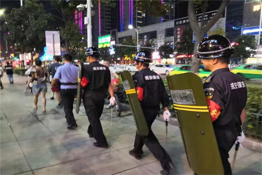 為忠實(shí)踐行“十六字總要求”,進(jìn)一步凝聚警心、鼓舞士氣,激發(fā)斗志、砥礪擔(dān)當(dāng),堅(jiān)決打贏新中國成立70周年大慶安保維穩(wěn)這場硬仗,“踐行新使命、忠誠保大慶”實(shí)踐活動實(shí)施, 2019年9月7日由樊城區(qū)漢江派出所民警帶隊(duì),戎安保安公司隊(duì)員分為兩班輪流在中心城區(qū)人員密集場所開展義務(wù)巡邏。